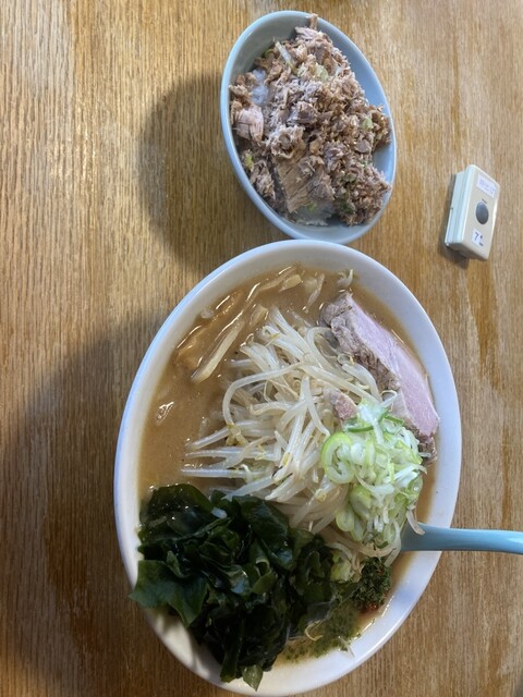 辛味噌もやしとチャーシュー丼いただきました。もやしの多さにビックリ‼️