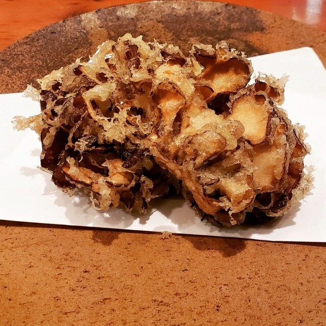 舞茸のフリット、というか見た目天ぷらですが、1株まるっとじっくり油通しされて、溢れまくりな香りが素晴らしかったです。