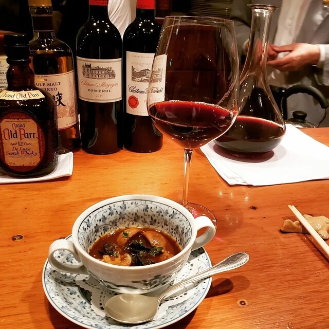 いつも一人で入るカウンターフレンチ。ワインの蘊蓄豊富なオーナーソムリエによる講義あり、料理に合ったワインの提案や、ワインに合わせた料理の提供もあり、居心地のよいお店です。