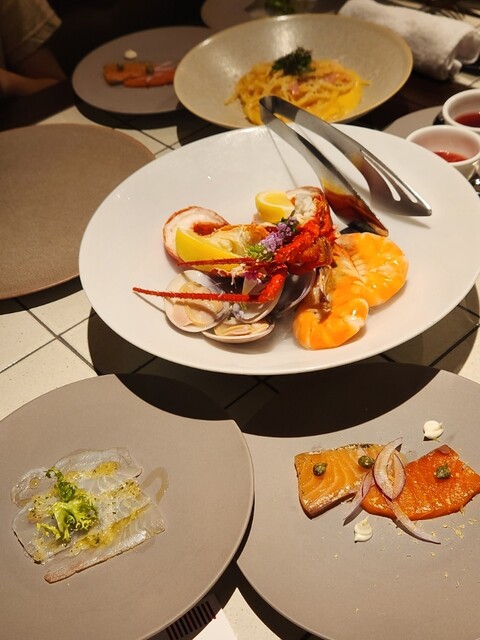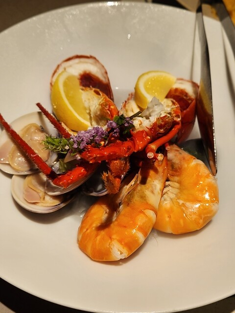 • シーフードプラッター:最初にお通し的にサーブされます。新鮮なロブスターやエビが贅沢!レモンを絞っていただく瞬間がたまりません