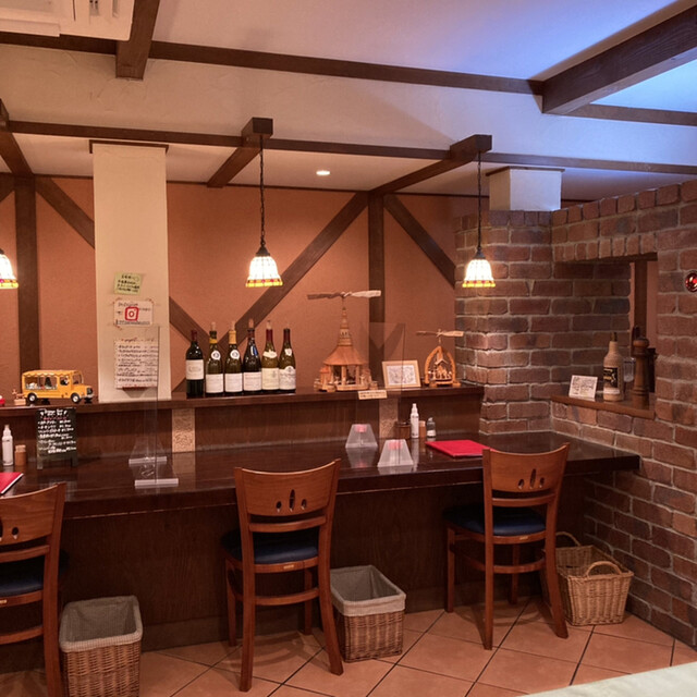 内装は、ティンバー調とレンガ壁を併用しており、壁に埋め込まれた飾り窓からは灯りが漏れています。そのほか古めかしい吊るし時計など、イギリスのパブようです。