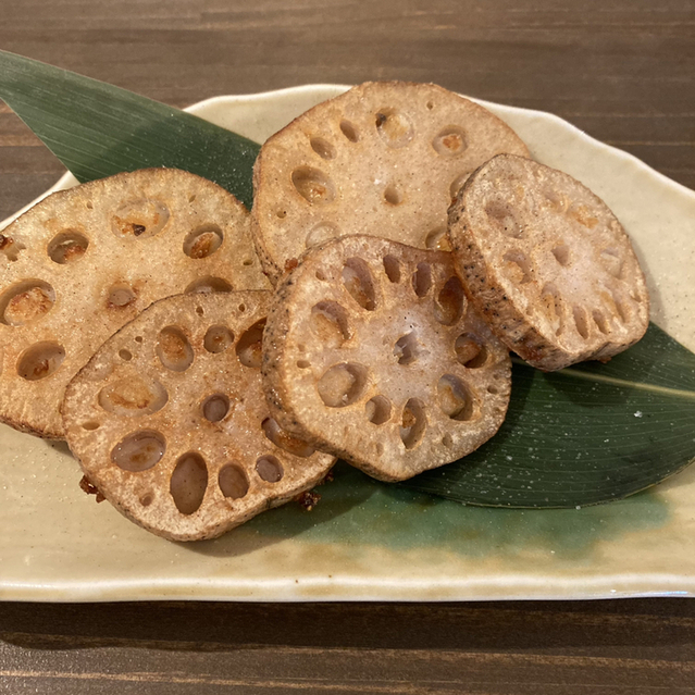 蓮根海老しんじょは冷めても美味しい。ただテーブルに添え付けの小壺の塩が固まってるのが少し残念。