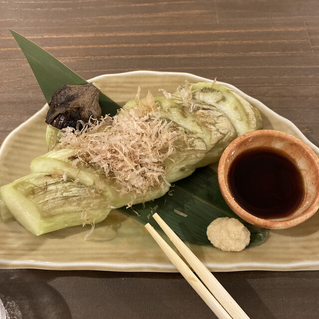 焼き茄子はが生姜とペストマッチなのでおすすめです。店員が皿の正面をいまいちわかってないようですが。