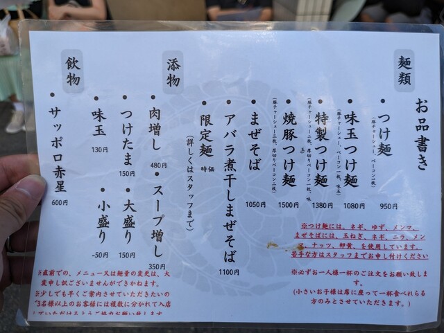 特製のつけ麺一本勝負で、自分好みのトッピングを選択して食べるスタイルが確立されており、麺は毎朝、店主自らが仕込みを行うこだわり