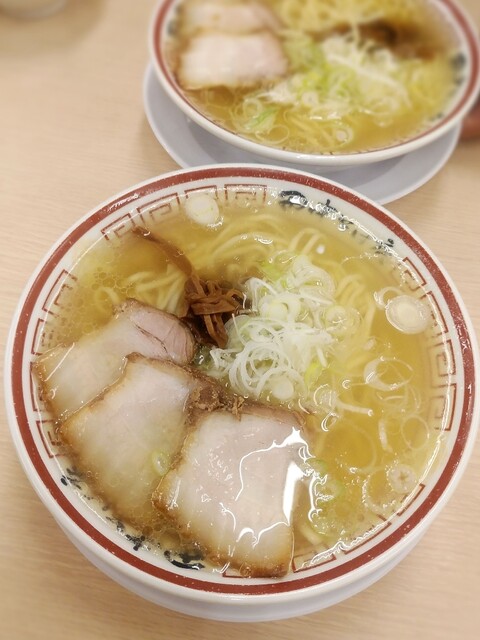 豚骨と塩ダレの清湯スープがどんぶりになみなみと注がれているが、あっという間に完飲!!