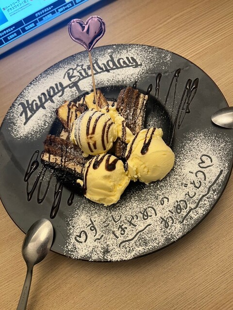 クーポンのケーキもちょっと早めの誕生会とてもステキでした。