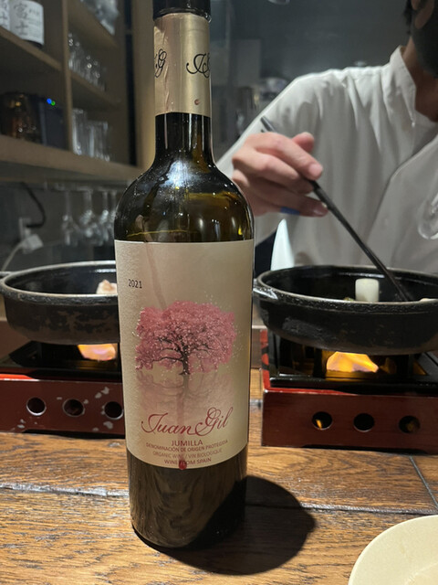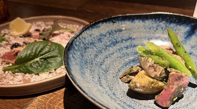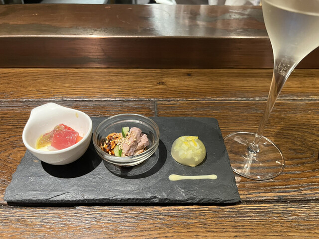 カウンター越しに一品一品鴨料理とそれに合ったワインをベアリングで提供してくれます。