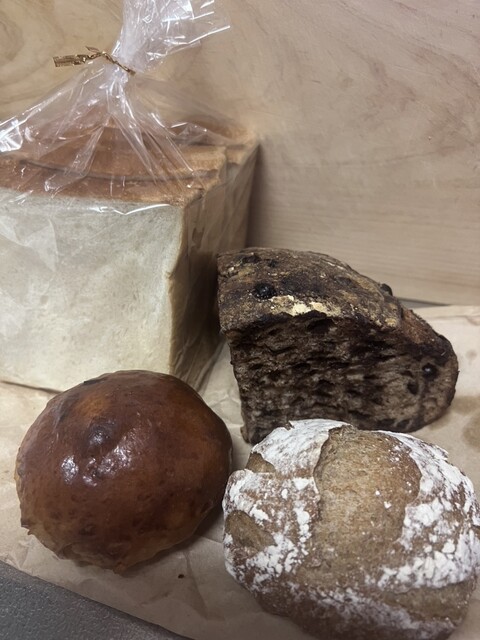人気が高いカンパーニュと角食パンの他にショコラカンパーニュとレーズンボールも購入。