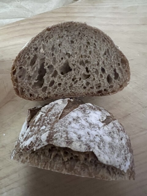 カンパーニュは余り生地で作ったミニサイズを選びました。噛みごたえがあり控えめな酸味とシンプルな味のパンで好みでした。