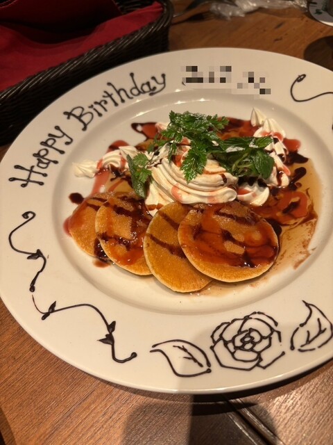 料理はどれも美味しかったー!いいペースで来るし、店員さんが新しい取り皿を持ってきてくれたり気遣いが有難い!ローストビーフがみんなに人気だった。大食いと少食がいたから、バランスが取れて量も満足!誕生日が近い友達がいたから、バースデープレートをお願いしたくて今回のコースを選択。バースデープレートのクリームが甘くて美味しかった!