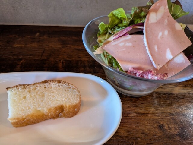 まずはサラダ(モルタデッシ)とフォカッチャ。