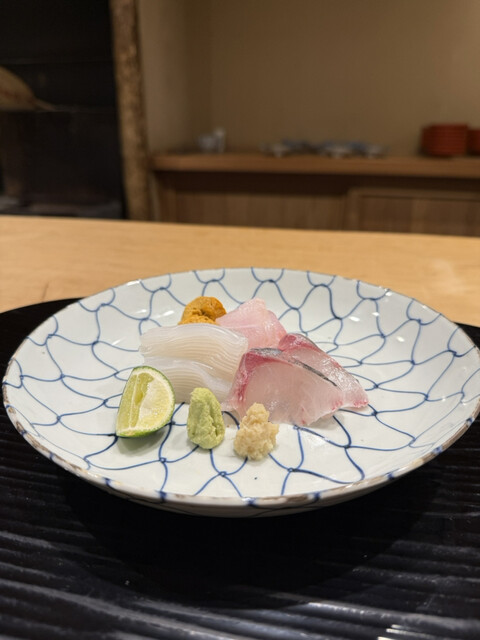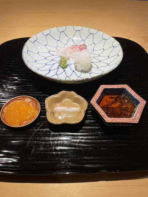 明石の鯛塩〆、ケンサキ、蟹しゃぶ