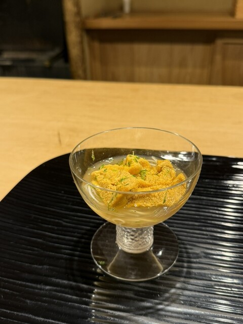 1.冷やし粥、淡路の紫ウニ、じゅんさい