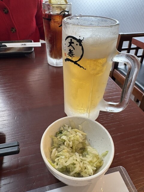 キンキンに冷えたビール(グラスもキンキン)キャベツの浅漬けのお通しで「このお店アタリ」と思いました