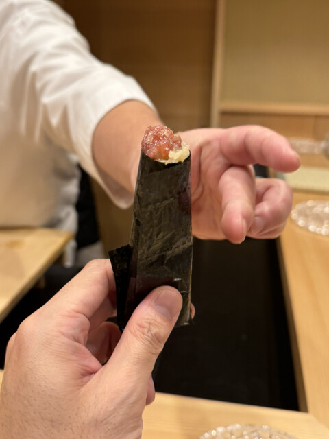 前回に続いてお酒は最近ハマっている甘口の日本酒を頂きましたがやっぱり鮨に合いますね。