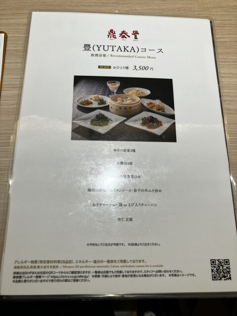 17時頃入店。これくらいの時間だと適度に空いていますね。母と一緒に今日はちょっと贅沢して豊(YUTAKA)コースにしました。前菜から少しずつ、デザートまで色々味わえます。何を食べても美味しいねーと言いながら。鼎泰豊はマニュアルがしっかりしていて世界のどこの店で食べても同じ味が楽しめると聞いた事があります。白のグラスワインを頼みましたが、小籠包とばっちり合ってました。お酒が進み、角ハイボールも頼んだんですけどね。青菜炒め、鶏肉の唐揚げ、茄子の辛味噌炒めも美味しかった〜!これを書きながらもまた行きたいと思ってしまいます笑