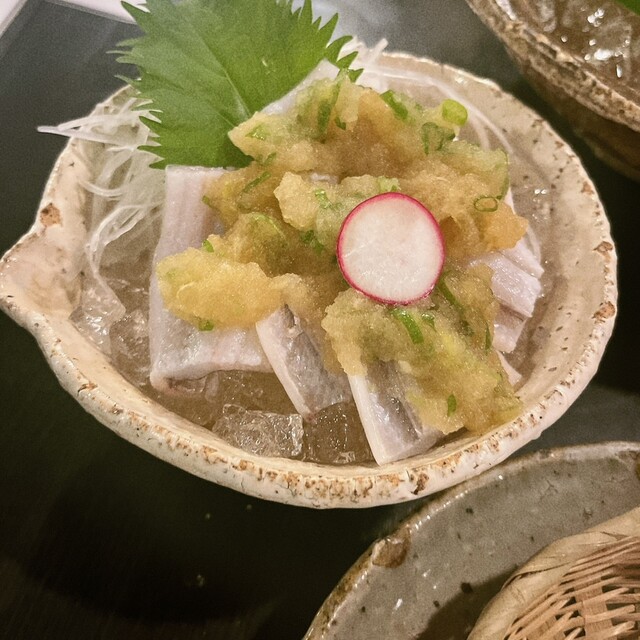 タチウオのお刺身も初めて食べました。醤油ではなく、大根おろしでとても相性が良かったです。