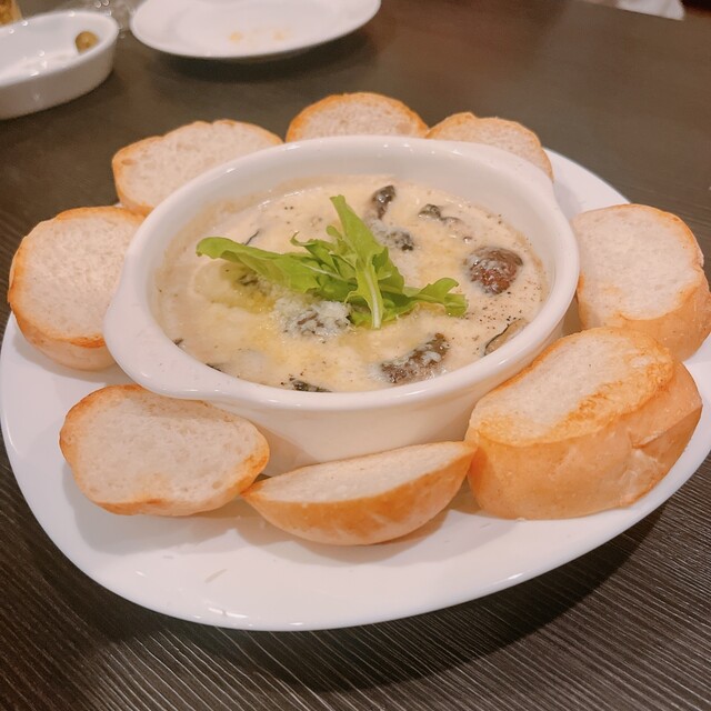 牡蠣とマッシュルームのゴルゴンゾーラ煮込み