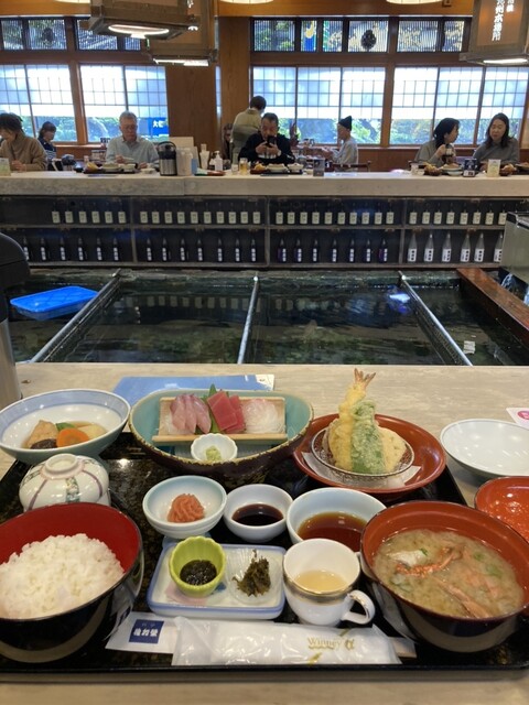 店内生け簀を囲むカウンターに着席、あまり待たずに料理が運ばれてきました。