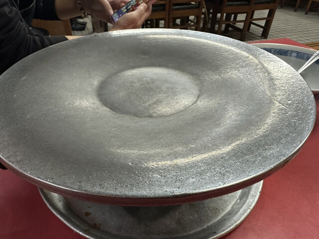 舞鶴出張の時、現地社員が、美味しい店に連れてってくれるのが恒例。今回は、海に近いのにはじめての肉系。入口で入るのが躊躇するような雰囲気。ただ個人的には好きな雰囲気なので入る。店に入ると注文は、常連の社員が呪文のように進む。わからないまま、せんまいとミノがくる。とてとてとも美味しい。酒が進む中、シルバーに光った鍋が登場。焼肉でこんな鉄板を使用するのは見たことがない。脂が落ちる穴がない。どう調理するのか不安のなか、鉄板の上に野菜と肉関係がぶちまけられる。時間が経つと野菜が萎れて、汁が出る。その汁をスプーンで掬って、ラーメンの鉢に入れる社員。俺がやると言うも、スプーンを渡してくれない。この汁は、〆重要だから欠かせないと黙々と掬う。出来上がる、ホルモンや肉は、焼肉方式に比べようにならないほど美味しい。なぜ、舞鶴市内だけに知られている食べ方なのか、本当にわからない。この鍋でこの食べ方を考案したのは、このお店の祖母らしい。歴史を感じながらたべすすむも、ほんまに美味しい。焼肉を食べるのが嫌になるくらい美味しい。〆は、溜めた肉汁をかけるうどん。説明なんかいらいでしょっ!ほんまに美味い!出張にきて、美味い出会いがあると、幸せを感じるアラフィフ。今日も地元のいい料理に感謝!