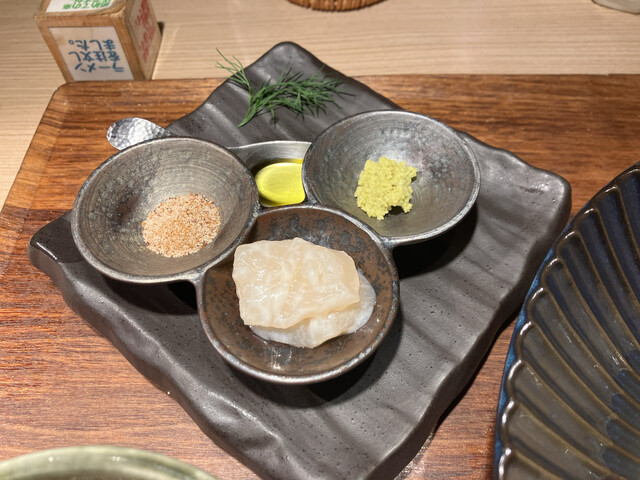 お店の壁に美味しい食べ方が書いてあるので、それに従うと美味しく頂くことができます。