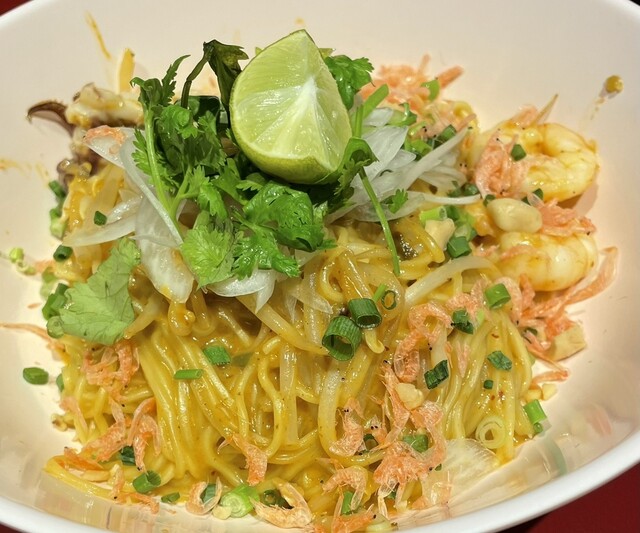 「汁無しトムヤン麺」食べ放題グリーンカレーライス➕スープ付き