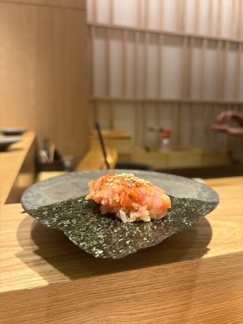 五反田にこんな綺麗でコスパ良いお鮨があるなんてびっくり!知れてよかったです。お鮨以外の一品料理が丁寧でどれも美味しかった。。もちろんお鮨も美味しいです。あわびにソースがかかったお料理が美味しすぎて久々に料理で感動しましたこれは絶対食べてほしい。これ食べにだけまた行きたいです。店内はテーブル席と高めのカウンターありました。綺麗目だけどカジュアルなので外観の割に入りやすい。