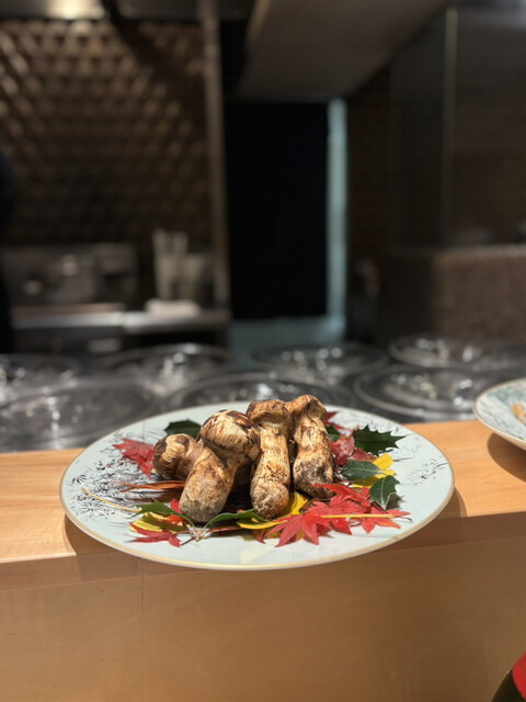 この辺から量を調節してくれます。丸々1個でも拳くらい大きい白子。半分にしましたが、これがめーっちゃ美味しい。松茸同様しっかりめにカリッと揚がってて、白子嫌いな人でも食べれるようにしたとシェフが言ってました。