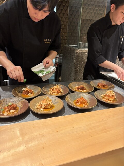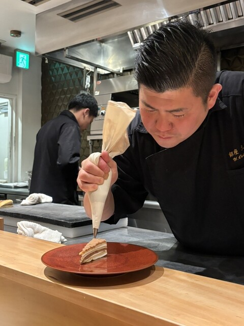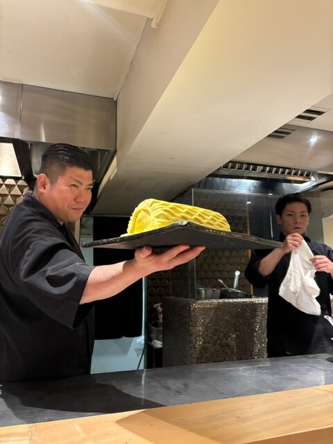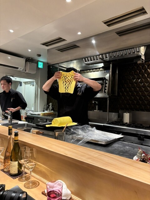 大石シェフは最初から最後まで本当に素晴らしかったです。来た時に大石シェフが上着をとってかけてくれ、名前で『〇〇さん量大丈夫?』と気にかけてくれ、どのスタッフさんよりも動いてお料理を作って、ずーっと笑顔で、帰りのコートも着せてくれて、とにかくサービス精神旺盛。そして何より元気!声が大きくて元気なのでこちらも元気をもらえました。お料理もパワフルです!