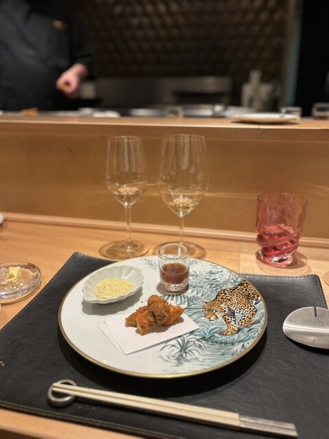 今年最後らしい。山口県の松茸。食べれてラッキー!コースには入ってないので1人5000円で追加。みんな食べて唸ってました。山椒タルタルか、自家製ソースで。想像以上にカリカリしっかり揚がってて美味しかった。