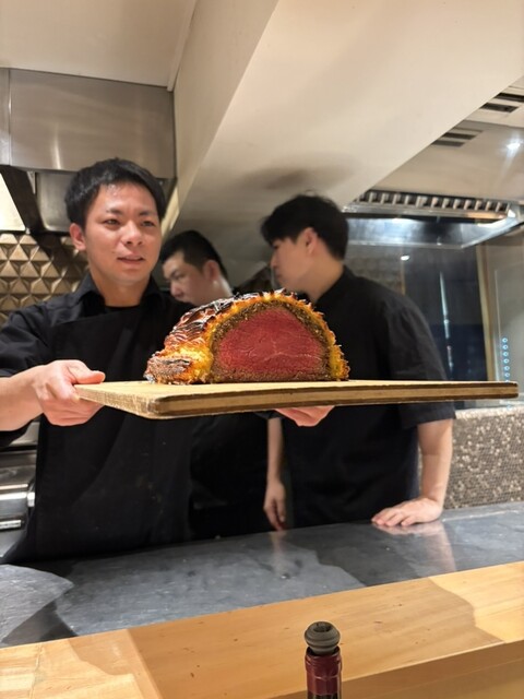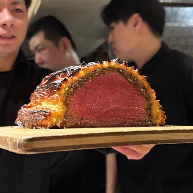 これがやばいです!!!パイ包み。目の前で準備して切るところも見れるから楽しみにしてた。想像以上に大きくてボリューミー。外側は結構黒くなるまで焼いてるように見えるけど中はレア。超超柔らかいーー。美味しかった。アメリカの牛では無いので超赤身ではなく、少しサシがあるので、後半少しきつかった。お腹空いてる時に食べたいこれ。