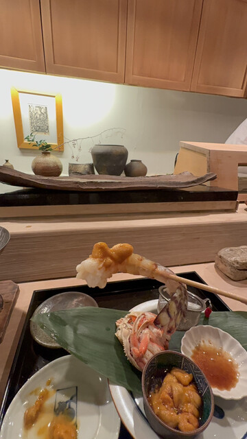 香箱蟹。活車海老。フカヒレ。そしてそれぞれの上に、大将が迷いなく添える馬糞雲丹。