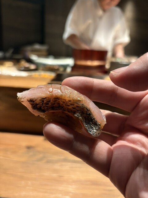 鮨の香りをすべて受け止めた指先を、