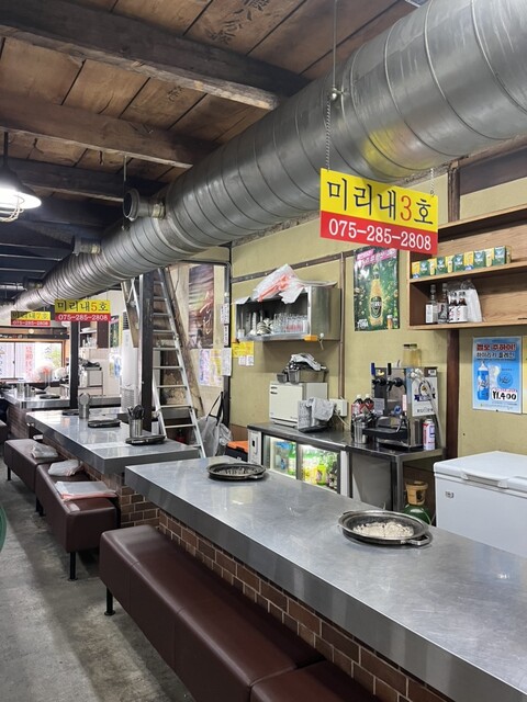 寺町通りを南に下り藤井大丸を通り越し、少し歩いたところにあります。大きなハングルの蛍光灯と、歌手IUちゃんの看板が目印。佇まいは日本の町屋のようですが、重い扉を開けるともうそこは韓国。