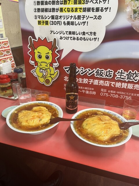 天津飯は、ご飯がたっぷりでボリューム満点。中華とはいえ京都らしい、和が薫る餡が絶妙な美味しさ。濃すぎず甘くなくしつこくなく上品。そしてそよ上品さを引き立たせるのがご飯。さらさらのあっさりしたご飯で、こってりした餡との相性が抜群。分厚くてふんわふわ卵とも食感のコントラストがいい。はーーやっぱり、美味しい天津飯って知れてると思ってたけど、味付けだけじゃなくて一つ一つの美味しさとかバランスが合わさってこそ、完成するんだな〜と学び。