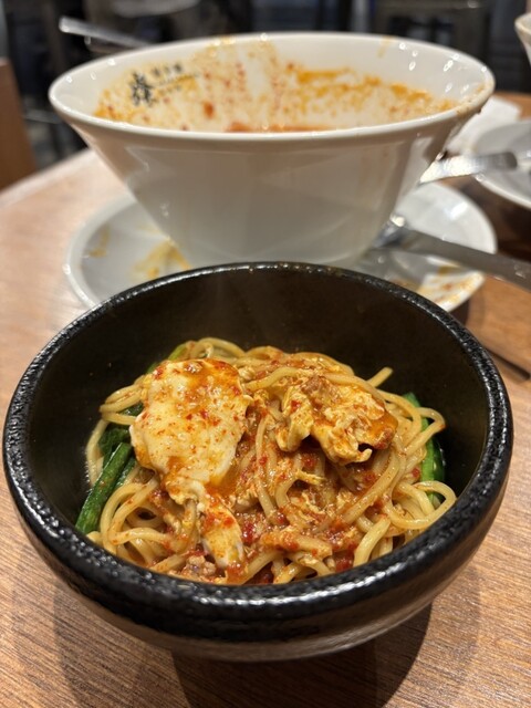 石焼きご飯は、店員さんにラーメンのスープと具材を入れて食べると美味しいですよとすすめられて、スープと具材を入れて混ぜ合わせ食べましたらとても美味しかったです(*´ч`*)