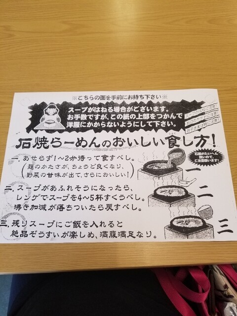 スープを掛けるので、飛び散り防止の紙を掴み構えます。