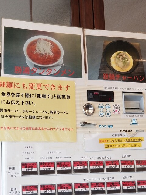 流れとしては、食券を購入した後、店員参入手渡しその際に麺の太さ、辛さを伝えます。