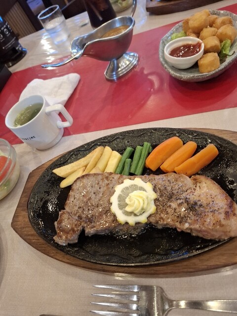 連れ2人はサーロインステーキ、国産だと思います。脂ものって柔らかく値段的にもリーズナブルで満足していました。