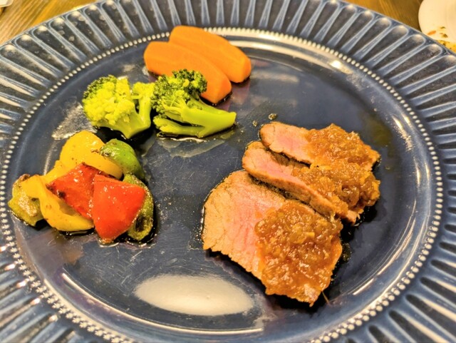生ハムの入った前菜や選べるパスタに魚にステーキなど、どれも美味しくいただきました。
