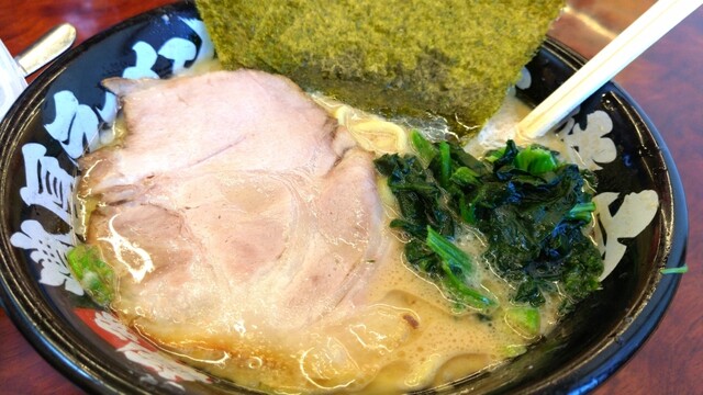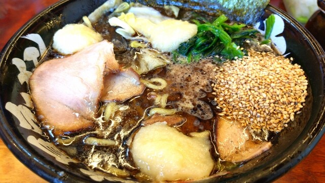 韮崎BLACK麺硬め旨ネギほうれん草別皿