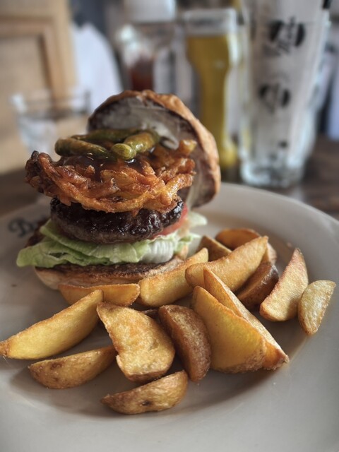 食感がとても良く、お餅の粘りがアクセントになっていて、スタッフの方おすすめのバーベキューソースがとても合って美味しかったです。ベーコンとチーズが塩気と香りをインストールしスタンダードだけど、和のテイストが入った絶品バーガーでした。