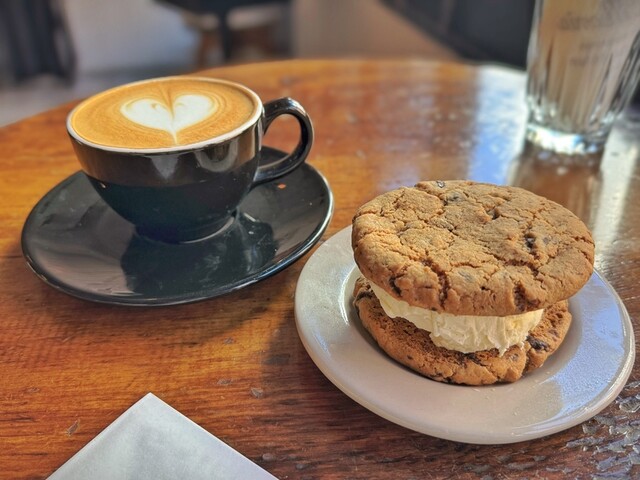 ホームメイドクッキーが厚くてザクザクしていて甘味が控え目で、アイスも甘さ控えめで濃厚。これとても美味しかったです。カフェラテとの相性とも抜群でした。