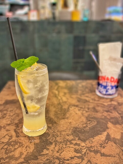 ハラペーニョ辛くはないのですが、ハラペーニョの旨みと自家製粒マスタードの相乗効果で熟成肉の旨みを、いちだんと感じられるメニュー。熟成肉の旨味が口の中で広がり、ハラペーニョの旨味が加わりとても旨かったです。FullcomboのGreenをいただいてから、自家製レモネードといただきました。