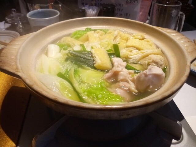 お通しの鶏団子スープにはじまり、鐘崎漁港直送のお刺身盛り合わせ(ゴマ鯖、中トロ、スズキ、イカ、タコ)、ベーコンとトロトロ玉子のシーザーサラダ、出汁巻き玉子、エイヒレ炙り、中津の唐揚げ、バターコーン、お造りイカゲソの天ぷら、京揚げステーキの九条ネギまみれ、塩ちゃんこ鍋…沢山食べ過ぎたのでちゃんこ鍋の〆は泣く泣く辞退。