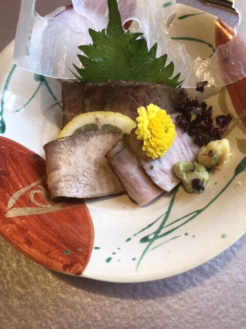 タン、もも、トロ。お造りと書いてあったので、もう少しレアなお肉を想像していたためイメージと異なりました。料理名には「蒸」お造りと書いてあるので私が勝手に異なるイメージを抱いていただけなのだと思います。握り同様、不味くはないけど美味しくもなく、あまり印象に残らない食感、味でした。
