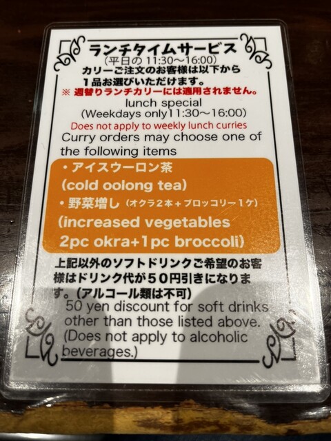 平日はランチタイムサービスがあるとのことで、ウーロン茶を頂く。