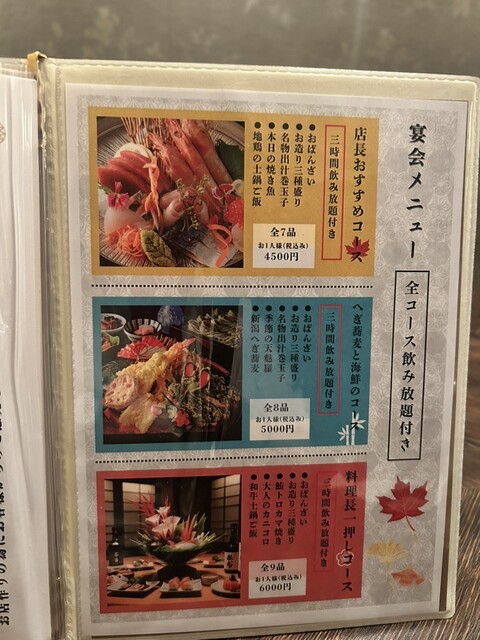 宴会コースも赤坂エリアでは飲み放題付で4,500円からあり。