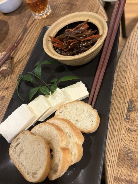 赤蒟蒻と牛蒡のきんぴらも、口の中でシナモンやら八角やらの香辛料の香りがふわっと広がって、こんなに複雑な味のきんぴらは食べたことないわー。って感想でした。チーズの上に載せて食べると更に美味しナイスなコラボでした。