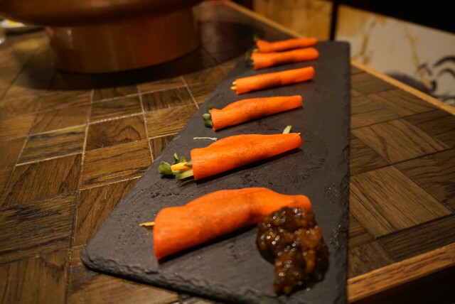 店員さんが目の前ですってくれるゴマにつけて食べる焼肉